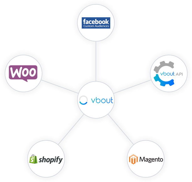 Connect your store with your marketing stack by installing one of VBOUT’s ready-made ecommerce plugins and without touching a line of code. If you have a custom ecommerce engine, your developers can leverage the powerful API library to customize the integration as you see fit.