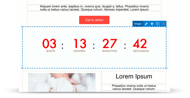 Personalize emails for each target segment. You can also integrate dynamic visuals in your email campaigns, such as animated GIFs, unique designs, colorful (but elegant) images, countdowns, CTA buttons, and “add-to-calendar” events.